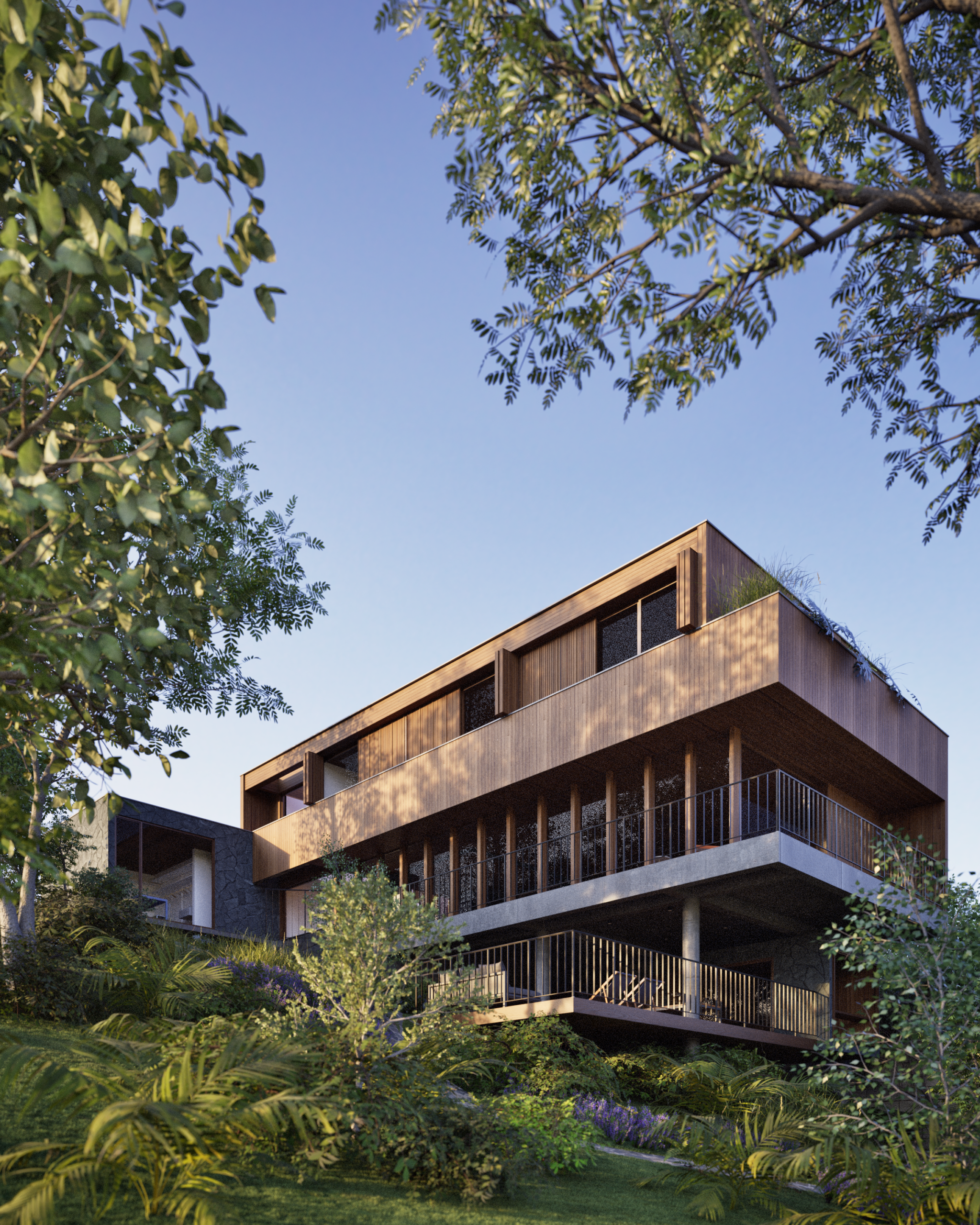 Implantada em um terreno em desnível e ao lado de um bosque preservado, a Casa Sagui nasce do desejo de viver em profunda conexão com a natureza. A arquitetura se desenvolve de forma sensível ao contexto, valorizando vistas, luz natural e a presença constante do verde. Com dois pavimentos principais e um subsolo integrado ao terreno, a casa se adapta à topografia de maneira fluida, resultando em volumes que parecem pousar suavemente sobre a paisagem.